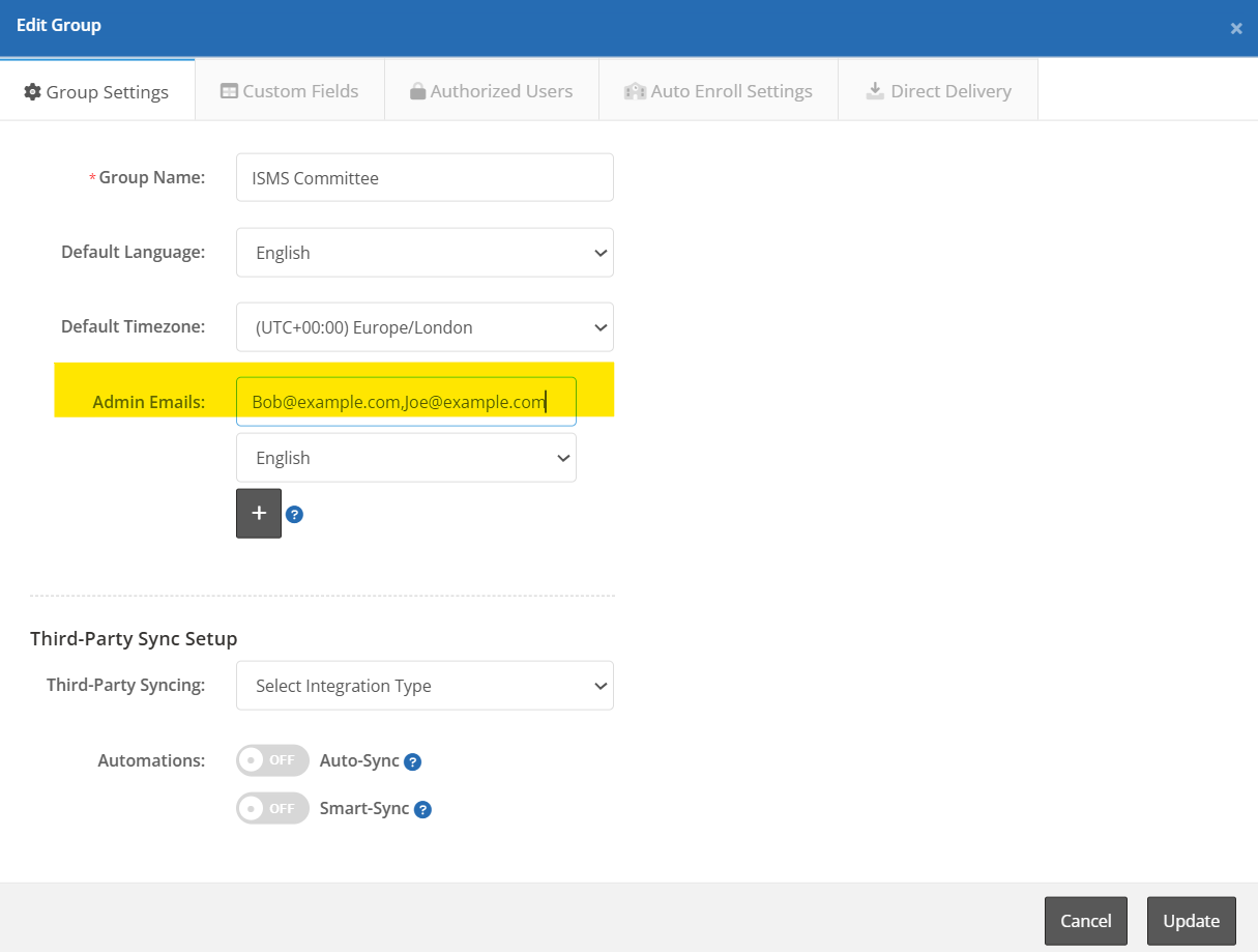 - Send Report to Group Manager - This will send a PDF report to the "Admin Email" under edit group.